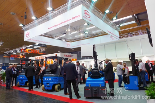 CeMAT 2016——于德国时间5月31日在汉诺威举行,比亚迪携多款锂电叉车参展。期间,2016国际叉车年度大奖International Forklift Truck of the Year(IFOY)也隆重揭晓。比亚迪叉车三支点ECB18C型号的平衡重式叉车,以卓越的性能表现和技术获此殊荣,成为中国首家获此奖项的叉车企业。成为本届展会一大亮点,瞬间引爆行业关注焦点。