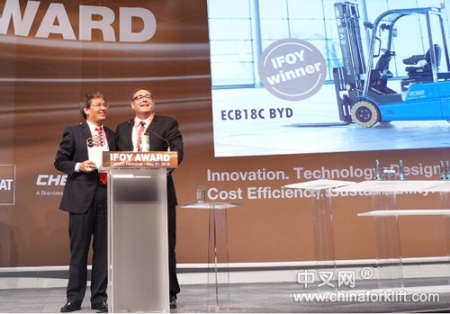 比亚迪叉车事业部毕国忠厂长在接受我网采访时讲到:比亚迪能在首次参选IFOY国际叉车大奖评比,就成为国内首个获此大奖的企业,表示很意外和惊喜。意外的同时,也认为比亚迪叉车获此殊荣,可谓是实至名归。并第一时间把喜讯传达给比亚迪中国总部,共同分享比亚迪叉车历经创新发展,迅速成长为工业车辆行业一颗璀璨的明星所带来的成就。