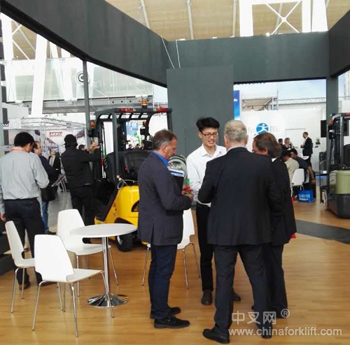 据中叉网(www.chinaforklift.com)记者现场了解到,本次尤恩参展的代表产品有升级版的3吨内燃平衡重叉车、三支点电动平衡重叉车、前移式叉车等均达到欧洲市场投放标准。吸引了众多外商的关注了解详情,展会首日即斩获订单。