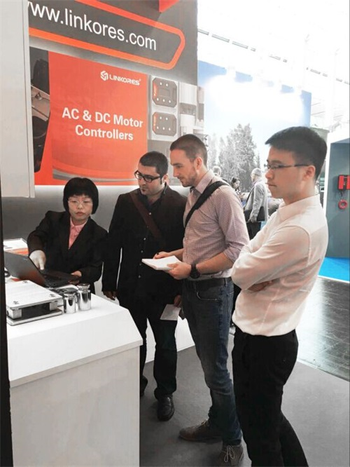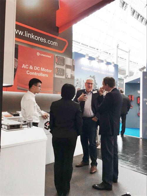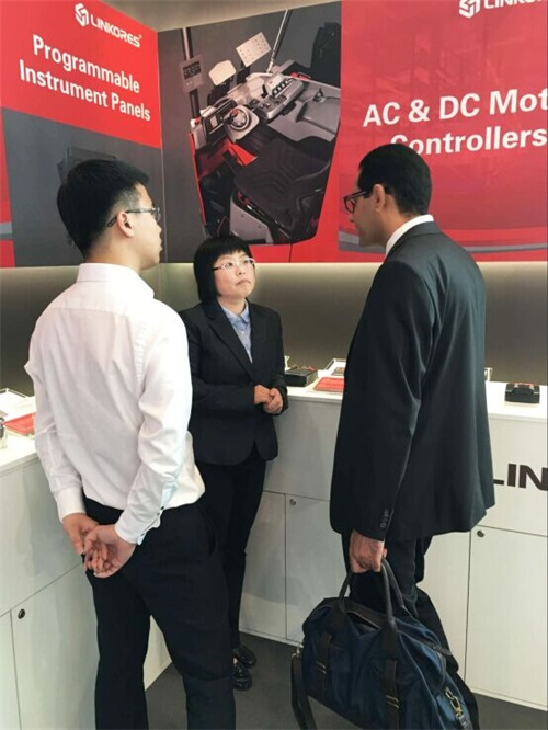 凌科斯集中展示了多项电动叉车智能化产品,借此契机助力开拓海外市场,前来参观、咨询的客商络绎不绝。产品包括交流/直流线控电转向控制器、交流牵引/泵站控制器、液晶仪表盘、车队管理系统以及叉车电子秤。