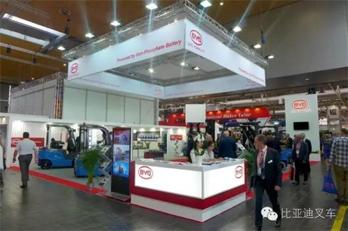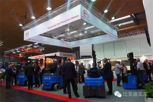 2016年5月31日-6月3日,比亚迪携旗下纯电动叉车系列产品闪亮出席了在德国汉诺威举办的国际物流展览会(CeMAT)。这是继2014年之后,比亚迪第二次参加该展会。比亚迪产品在25号展厅的F11展台进行了展示。在 “省钱,省电,安全未来”(Save money. SaFe battery. Safe future.)的主题下,比亚迪世界领先的零排放绿色纯电动叉车在物流行业类掀起了波澜,吸引了广泛的关注。