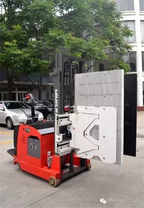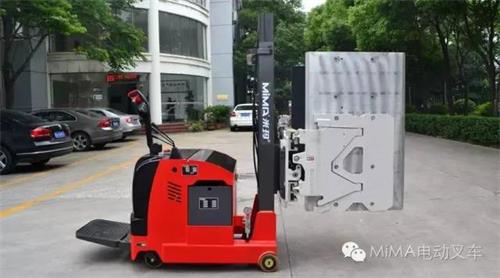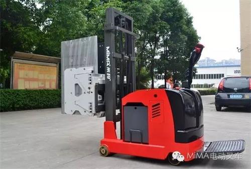 MiMA(米玛)电动叉车根据客户的实际工况要求,研发制造了“抱夹车”,产品外观优美、制造精细、操作灵活、性能优越,解决了传统叉车在纸箱搬运过程中的难题,降低了纸箱破损率,提高了仓储空间的利用率和搬运效率。