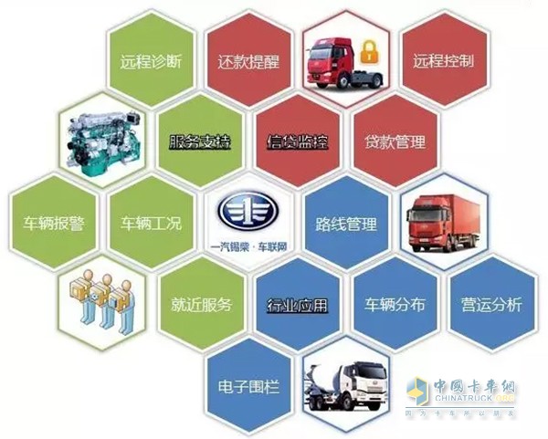 锡柴车联网以“千里之行”、“信贷监控”、“智能运营”三大模块为主线,为用户提供定位、运营分析、线路管理、驾驶行为分析、就近服务、实时工况查看、安全管理、贷款管理、远程控制等十余项特色服务项目,功能强大,应用范围广,满足各种车辆运行检测、管理和城市交通的智能化管理的需求。