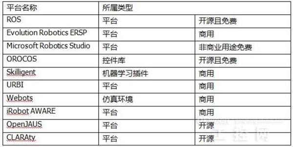 图表1:常用机器人软件开发平台