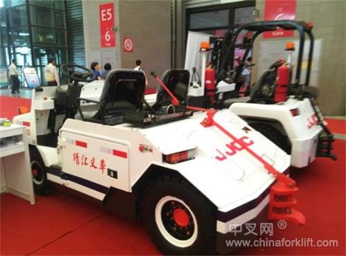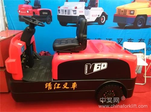 靖江叉车在本次展会上展示的车型,包括两台:GD30T创新型电动牵引车、QDD60座驾式蓄电池牵引车,一台KM-II系列2.5T内燃式牵引车,一台GTD20蓄电池平衡重式叉车。据了解,本次展出的三款牵引车为其公司主打产品三款产品。