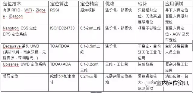 对各个定位技术的优劣做个统计表: