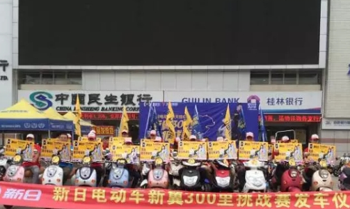 本次活动主题为新日300里挑战赛,旨在体现新日电动车骑行里程的极限性,南宁市区路况多变且车流量较大,成为本次挑战赛的看点;克服天气炎热、车况、路况等外界环境的影响,30名骑手,30辆车,72小时,6个区域,300里,新日电动车穿越南宁的大街小巷。今天南宁的骑行活动仅仅是一种现象,未来新日电动车一定成为南宁电动车市场的一种力量。