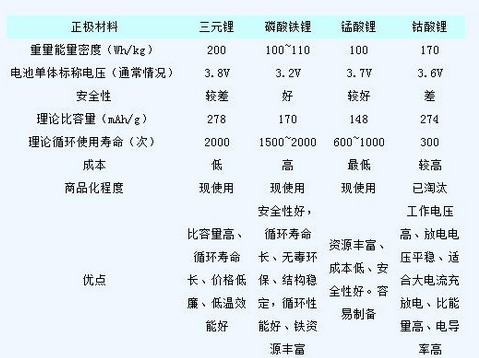 下面我们来对比一下,各类动力电池正极材料优缺点,从而回答为什么三元材料在物流车中占主流的问题。