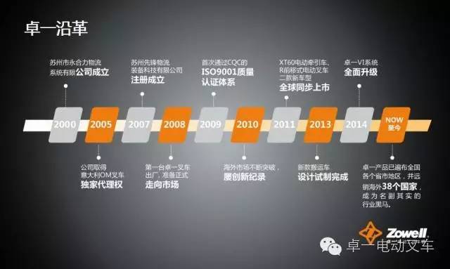 首先,卓一人向博商会员简单介绍了卓一电动叉车的发展历史。卓一的前身苏州永合力贸易公司,经过4年快速发展和3年精心准备,2007年先锋物流正式注册并开始投入电动叉车的研发,“做一款证明中国实力的叉车产品”成为卓一人的梦想。从第一台“卓一”问世,到2009年,卓一叉车一举成为黑马,震惊国内同行;2009年的行业展会,世界听见了“卓一”的声音。团队成员的坚持和努力奠定了“卓一“品牌的基础,2011年,公司迎来大发展,一步步走向成功。