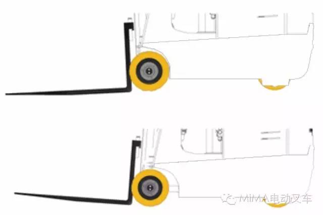 可变轴距。门架前倾时轴距减小,转弯半径随之减小,更灵活;叉货时门架后仰,轴距增大,极大的增强了车辆负载后的稳定性。