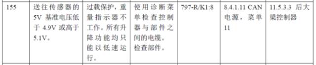 故障代码155:后桥控制器模拟信号感应器的5V基准电压异常,低于4.9V或高于5.1V;