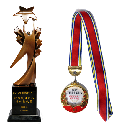 8月25日晚,我县“2016军歌嘹亮宁海人”颁奖典礼在宁海电视台演播厅举行。县委常委、常务副县长林坚,人武部政委邓富根,宁波如意公司董事长储吉旺等一行出席典礼。在此次颁奖典礼上,有10位退伍军人荣获“宁海县十佳优秀退伍军人奖”,储吉旺荣获“优秀退伍军人特殊贡献奖”。