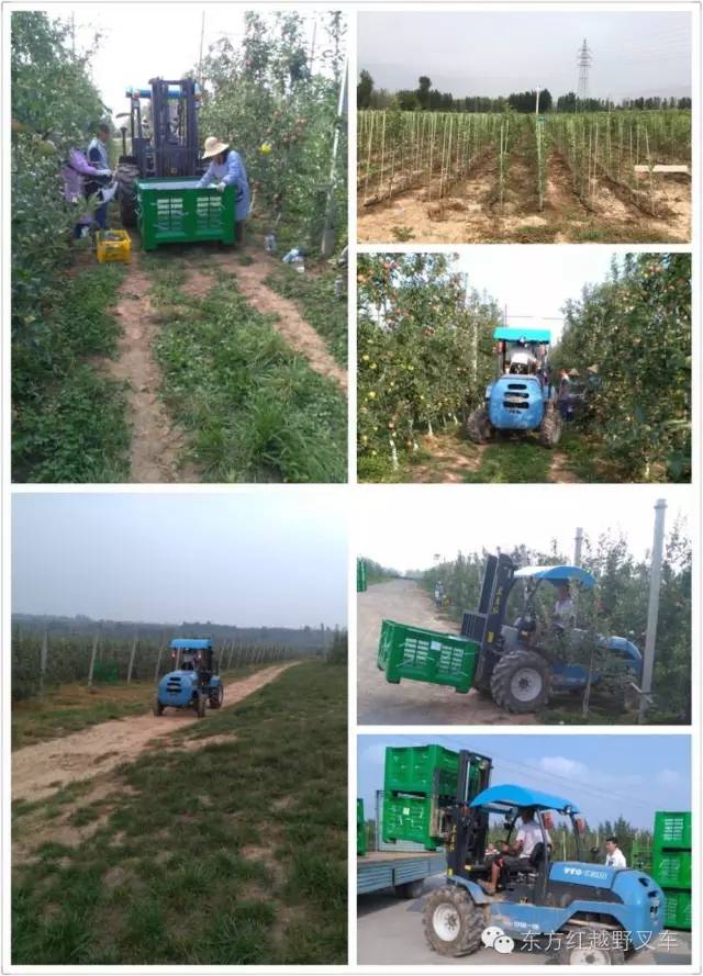 越野叉车主要在果园地里搬运果箱、在地边装卸果箱,以及在苗圃地里搬运物料。由于东方红TC4015B越野叉车是四轮驱动,越野性能超群,在松软的苗圃地里转运物料非常适合,再也不向以前买的一款某品牌的2轮驱动的越野叉车会趴窝了。