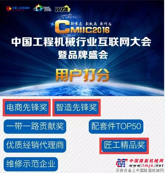 柳工在2016中国工程机械行业互联网大会(Construction machinery industry Internet Conference ,简称:CMIIC2016)暨品牌盛会活动第一轮网络投票中分别晋级“智造先锋奖 ””电商先锋奖“50强,“柳工CLG933E挖掘机 ”晋级”匠工精品奖“100强 。