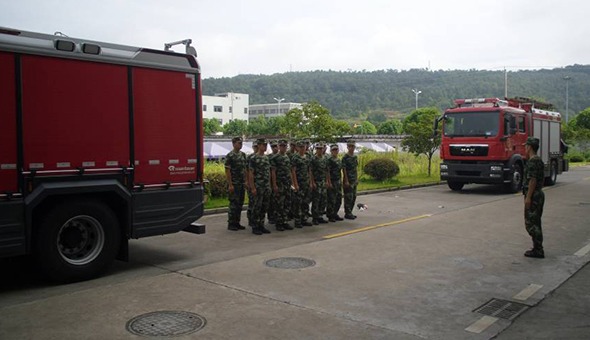8月4日上午,新昌县消防中队16位官兵来新柴公司技术中心试验室熟悉现场并开展消防应急演练,安监科配合演练。