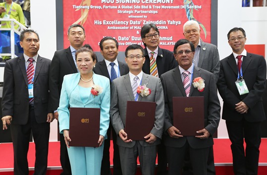 9月13日,中国新能源电池行业的龙头企业浙江天能集团与马来西亚TREE Movement、环球财富公司在第十三届中国-东盟博览会上的马来西亚馆举行签订打造马来西亚首个“智慧城市”,推动绿色生活出行的战略合作签约仪式。马来西亚驻华大使拿督·扎伊努丁·叶海亚,马来西亚外贸促进局首席执行官拿督·主理,天能动力副总裁王志坤,Tree Movement董事局主席Dato' Manjit Abdullah,环球财富董事长洪雁等领导嘉宾出席仪式并致辞,现场的50多家境内外主流媒体见证了中国新能源企业与马来西亚企业双向战略合作方面向前迈出可喜的一步。
