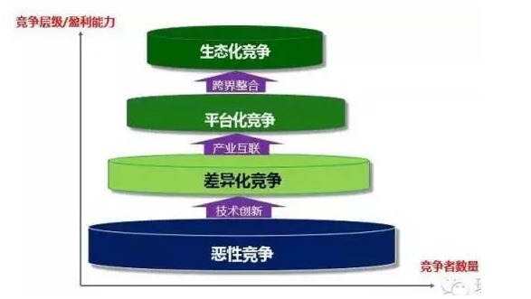 从企业核心竞争力的高低角度看企业的商业模式,可以将商业模式分为四大等级:无差异化商业模式(红海)、差异化商业模式(蓝海)、平台化商业模式、生态化商业模式。而平台化商业模式和生态化商业模式都是近十五年内才变成逐步成熟,未来会愈加常见。