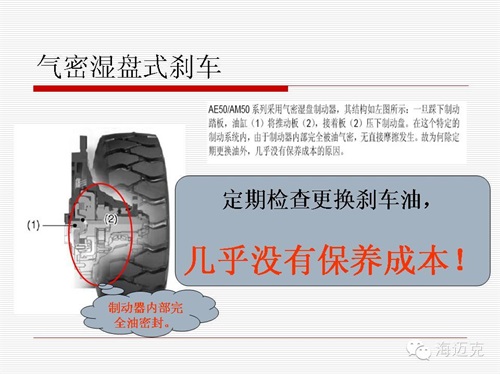 这是海迈克叉车的一张王牌,原本军工技术的双轮边驱动系统被移植到了民用叉车领域。