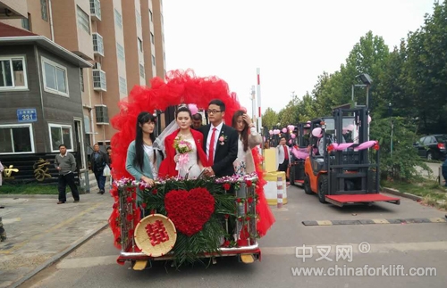 没有豪华轿车车队,没有隆重的排场,爱却不打折扣。下午,一个别致的婚车车队——由6辆宝骊叉车组 成的婚车车队,载着“爱情宣言”驶过沭阳街头,令路上纷纷驻足赞叹这场的浪漫仪式。载着两位新人开进幸福之路,吸引了许多路人驻足观看。甚至吸引当地电视台的关注与报道,无疑让宝骊叉车在当地名声大噪。同时也体现了对宝骊叉车的信认与肯定。