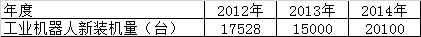 2012-2014年美国工业机器人新装机量情况