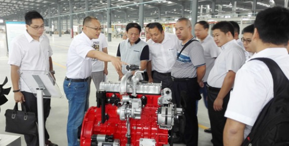 客人们首先在公司总经理白洪法的带领下参观了公司的产品展示厅,认真听取了公司技术人员对公司JA、JB、JC三大系列国Ⅲ产品的介绍,大家对公司在这么短的时间内开发出这么多产品表示肯定。现场一辆配九迪JA系列的柳工3T叉车引起了客人们的兴趣,大家在品头评足一番之后,一位经销商朋友还饶有兴致地坐了上去,发动车辆试驾了一把,现场炫起了车技。试驾之后,这位朋友也将自己的感受告诉了大家,这台车动力不错,噪声也不高,也比较舒适,值得向用户去推荐。客人们还参观了公司的产品装配线,试车车间和产品涂装线,并参观了公司的产品研发基地。