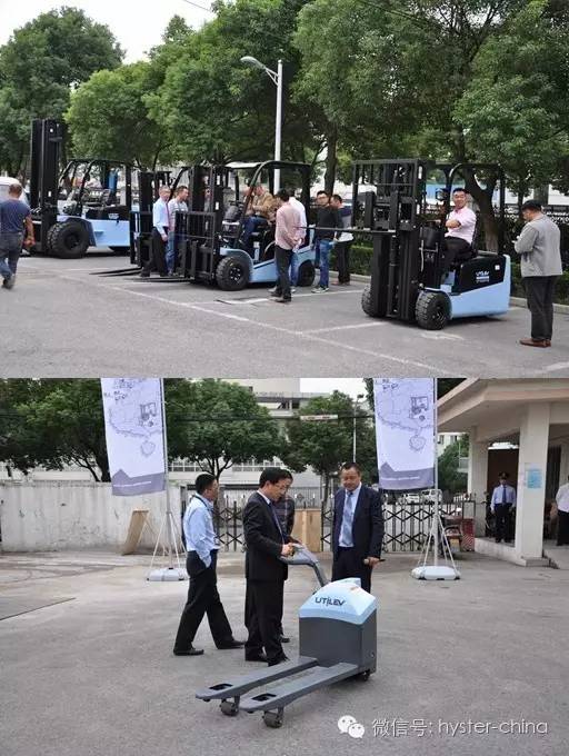 产品集中展示区,优特力员工为客户进行了多款产品的动态操作示范和详细讲解,并让客户亲自操作体验,了解熟练各种车型,其中包括了即将上市的新产品四轮电车1.5-3.5吨。