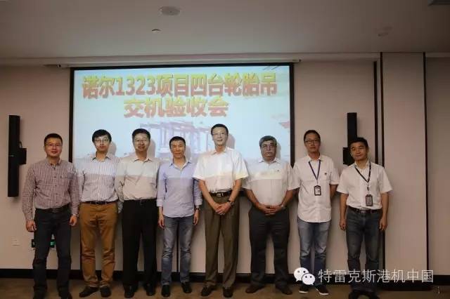 图为特雷克斯诺尔中国总经理刘言先生,副总经理朱恒耀先生,项目总监Ravi Kaul先生,项目经理叶清特先生与北仑第三集装箱有限公司总经理任小波先生及其他管理人员合影留念