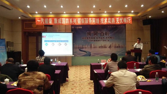 2016年10月21日锡柴在美丽的草原之城-通辽,举行了一场主题为《拥“网”直前》一汽锡柴康威国四产品推介会。出席本次会议的有五征辽西区域经理张家超、通辽亿豪公司刘洋总经理、锡柴长春事业部经理丁进华以及通辽地区新老客户共计50余人参加本次活动。