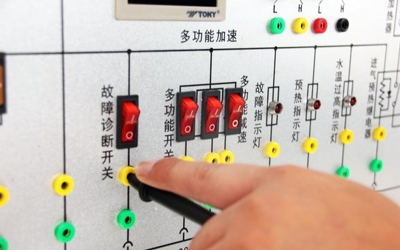 据工作人员介绍,教学板上已经将发动机的每个细节都标出,用于教学的时候学员们只需要用万用表来排查即可,这也是当下最简单快捷的排除问题的方法。