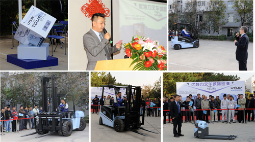 此次活动辗转六大城市,6站前后共计迎来宾客400多人,我们要感谢从繁忙中抽身莅临现场每一站活动的贵宾们,以及,青岛站巡演提供场地的友好客户 - 中远物流公司。还有持续关注优特力首次巡演活动的各位,正是你们的积极支持和响应,才是巡演活动的源动力,也使这场活动丰富圆满。为用实际行动感谢拨冗来到活动现场的客户,我们在每站的活动最后都安排了一场特殊的新品迷你电动托盘车UT1.5-WE优惠促销。据不完全统计,现场签约数量超过80台。同时我们也再次真诚的感谢在每一站中与我们通力合作的各经销商,正是你们倾情投入为这次巡演活动的成功举办提供了全面的有力的保障!