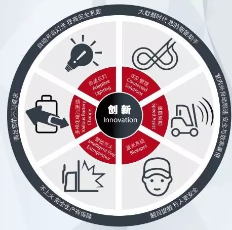 在更加高效的情况下,林德更不会忘记作业安全的重要性。林德1276系列坐驾式电动平衡重式叉车上均配备了速度辅助系统,在室内外作业时能够自动限速,遇到转弯还能自动减速,有效保证了行车安全。另一个自动灭火系统,实现了叉车自我保护机制,大大提高了作业安全系数。并搭配蓝光警示系统、自适应灯的自动开启灯光系统、橙色三点式安全带机器连锁功能等安全选项,让作业安全无忧。