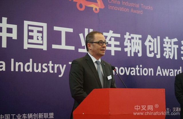 颁奖仪式由中国工程机械工业协会工业车辆分会张洁秘书长主持。中国工程机械工业协会工业车辆分会会长陆大明和德国汉诺威展览公司高级副总裁佩喜先生分别致辞。