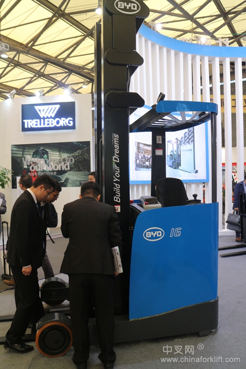 在本次Cemat Asia 2016展会上,比亚迪携电动平衡重式叉车、电动托盘式叉车、电动前移式叉车、电动堆垛式叉车和电动牵引车,其中在2016年德国汉诺威国际物流展上首次参加IFOY大奖评选并荣获2016年度IFOY年度叉车大奖的三支点平衡重式叉车作为明星产品亮相。此外,本次展会比亚迪还展示新款电动前移式叉车,优美的外形设计、精细的制造工艺,领先的产品技术,优秀的产品质量一经亮相就得到了客户的广泛肯定。