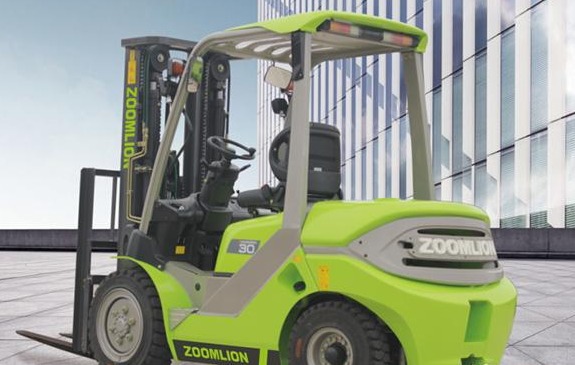 另一参展的明星产品为中联重科FD30-R平衡重式叉车。在整体设计方面,FD30-R门架采用前双缸结构,靠近货叉架两侧布置,且前缸链条开发专用的导向油槽,属具管路可以直接布置在链条上,减少了单根油缸需配置胶管和胶管滑轮结构。同时,FD30-R车身广泛运用SMC新材料,有效提升了整车性能;抗压强度可达钢材的4倍,抗疲劳极限最高接近70%-80%,隔音效果是钢板的2-3倍;整车采用意大利著名品牌欧兰帝板翅式水箱,散热性能更优秀;电气系统采用CAN总线技术,功能模块可自由升级加装。