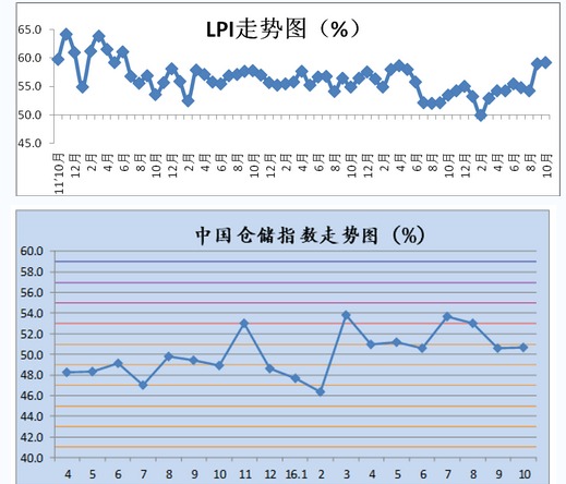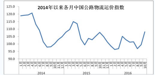 中国物流与采购联合会发布的2016年10月份中国物流业景气指数为59.2%较上月回升0.2个百分点;中国仓储指数为50.7%,较上月回升0.1个百分点;中国公路物流运价指数为108.1点,比上月回升8.7%。