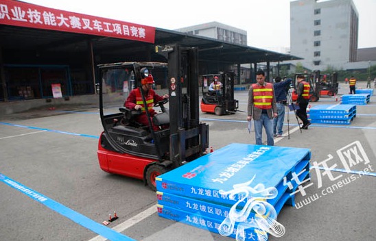 今日下午,在重庆市九龙园区隆鑫通用公司的广场上,2016年九龙坡区职业技能大赛叉车工和天车工项目竞赛正在如火如荼地举行。