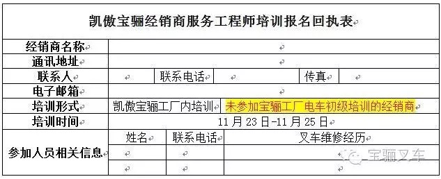 培训地点:凯傲宝骊工厂 (培训免费,住宿免费(11月22日-24日三天),提供午餐