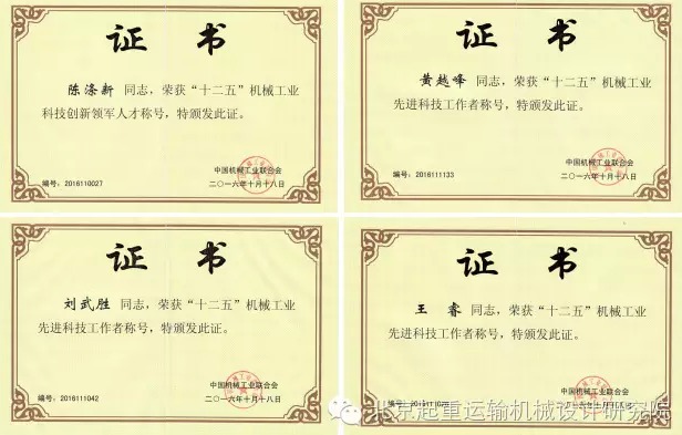 北起院院长助理、索道工程事业部总经理黄越峰,副总工程师、起重工程事业部总经理刘武胜,研发中心副主任王睿三位同志荣获“十二五’机械工业先进科技工作者”称号。