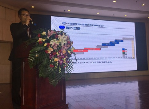 一汽锡柴销售公司河南事业部经理翟恩强对锡柴康威国五4DW产品进行了详细介绍,发动机完全正向开发,立足用户个性化需求,采用行业内一流技术核心,是目前国内汽车行业唯一的不烧尿素的柴油机。