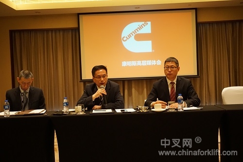 新品发布仪式后,康明斯邀请媒体进行了小型的新闻发布会。就当前行业关注的国三排放升级、产业优势、行业动态、售后服务、新品特点以及在工业车辆行业的应用和提升,康明斯高层进行了详细的解答。