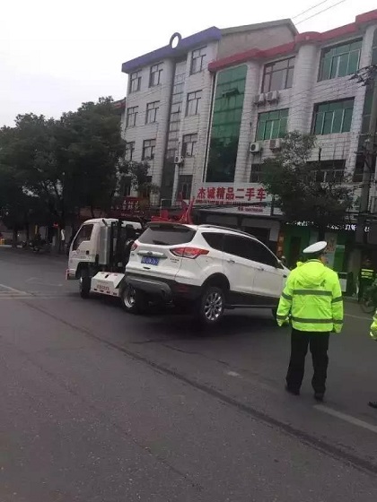 为了维持道路正常通行秩序,整治路边随意乱停、乱放现象,松滋交警申请专项经费对现有设备进行升级,引进了新设备“多功能车载叉车”,原本“放心”违章停在路边的车辆轻易就被“多功能车载叉车”拖离现场。