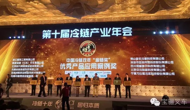 凯傲宝骊凭借冷库专用车KOOL系列电动平衡重叉车,成功中标烟台大型冷库的招标项目,斩获了第十届中国冷链产业“金链奖”之优秀产品应用案例奖。