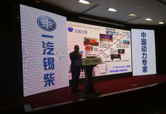 一汽锡柴销售公司安徽事业部经理陈炳钟对锡柴康威国五产品进行讲解