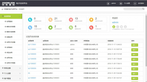 根据中联的业务需求,一签通云平台具备合同模板管理、在线编辑或上传文件、创建待签合同、批量签署、后台自动签署、防伪打印等多项功能。