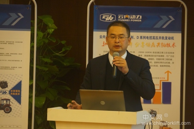 随后,昆明云内动力股份有限公司总经理助理、客户服务公司总经理张思泽作“非道路版块的发展历程、2017年规划、十三五规划及远景”的主题报告。近年来,云内动力在非道路领域取得可喜的成绩,1-11月云内动力非道路发动机销量增幅50%以上,其中叉车发动机销售增幅更为明显,公司在工程机械、农用机械领域的市场份额迅速提升,市场的成长离不开强有力的服务团队,强化服务体系,我们将与代理商、用户多版块来共同完成服务。建立可靠的服务体系,云内从未止步。我们的目标是从产品到用户提供终身的生命周期服务,实现从制造商到服务商的转变,投入技术升级的全面实施。弘扬民族品牌,分享共轨技术,让我国电控高压共轨技术得到全面的应用和发展。