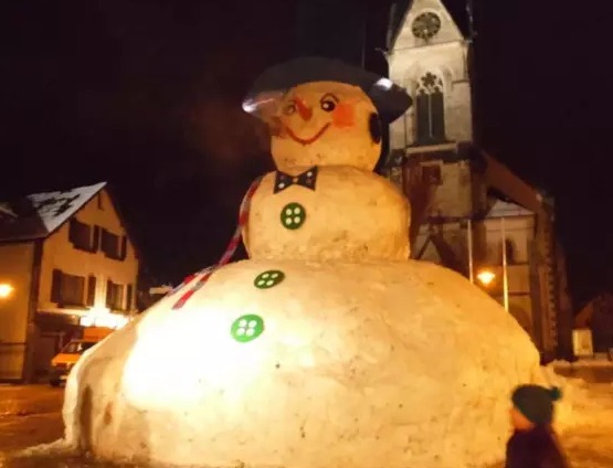 还未完全完工,小镇及从其他城镇慕名赶来的朋友们就争相一睹“雪巨人”的风采。