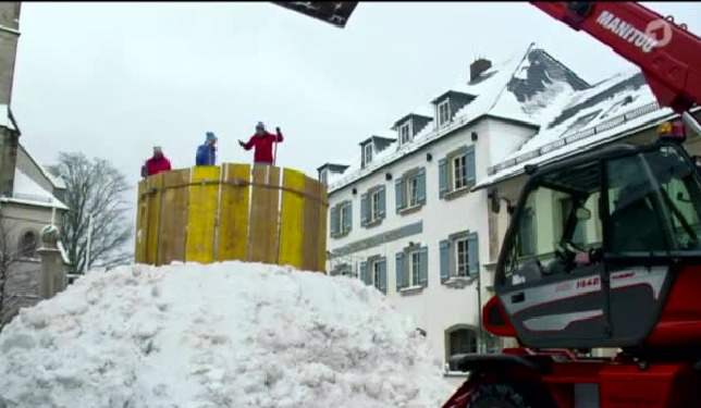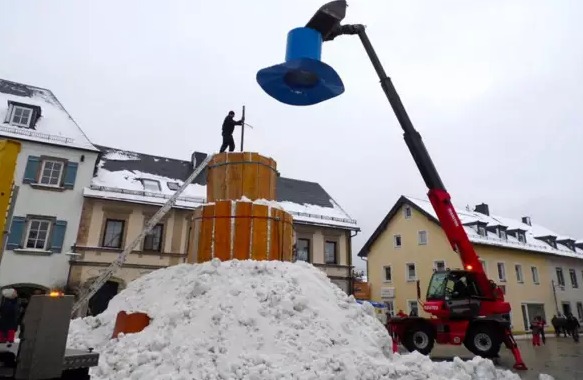 近日,在德国巴伐利亚州的比绍夫斯格林镇(Bischofsgrün),人们确实用曼尼通伸缩臂叉装车堆了一个雪人,不过这是一个高达10.5米的“雪巨人”,这个巨型雪人一出现在教堂门口的广场,平时安静的小镇顿时沸腾起来。