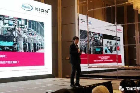 会议由凯傲宝骊山东区域经理顾英超先生主持,首先由企业客户开发及电车总监纪大鹏先生向在场嘉宾做了详细的公司介绍,将凯傲集团的历史沿革和宝骊叉车的发展历程生动传神地展示在嘉宾面前。
