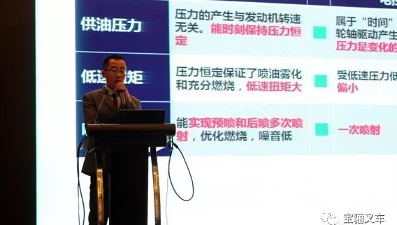 接着由凯傲宝骊企业客户开发经理孙春逢先生给大家介绍了宝骊全系列内燃平衡重叉车,并着重讲解了宝骊配备潍柴国三高压共轨发动机的D+叉车,通过对比将宝骊高压共轨叉车的优点逐一凸显。