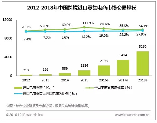 跨境进口零售市场方面,随着2014年下半年进口零售电商政策的放开,大量内贸电商和创业企业涌入进口零售电商市场。2015年,该市场的市场规模达到1184.3亿元,增长率为111.9%,在进口电商中的渗透率达13.2%。2016年,跨境电商政策收紧,行业增速下调,预计在86%左右。未来,稳定的市场需求仍将推动进口零售电商市场保持平稳增长。